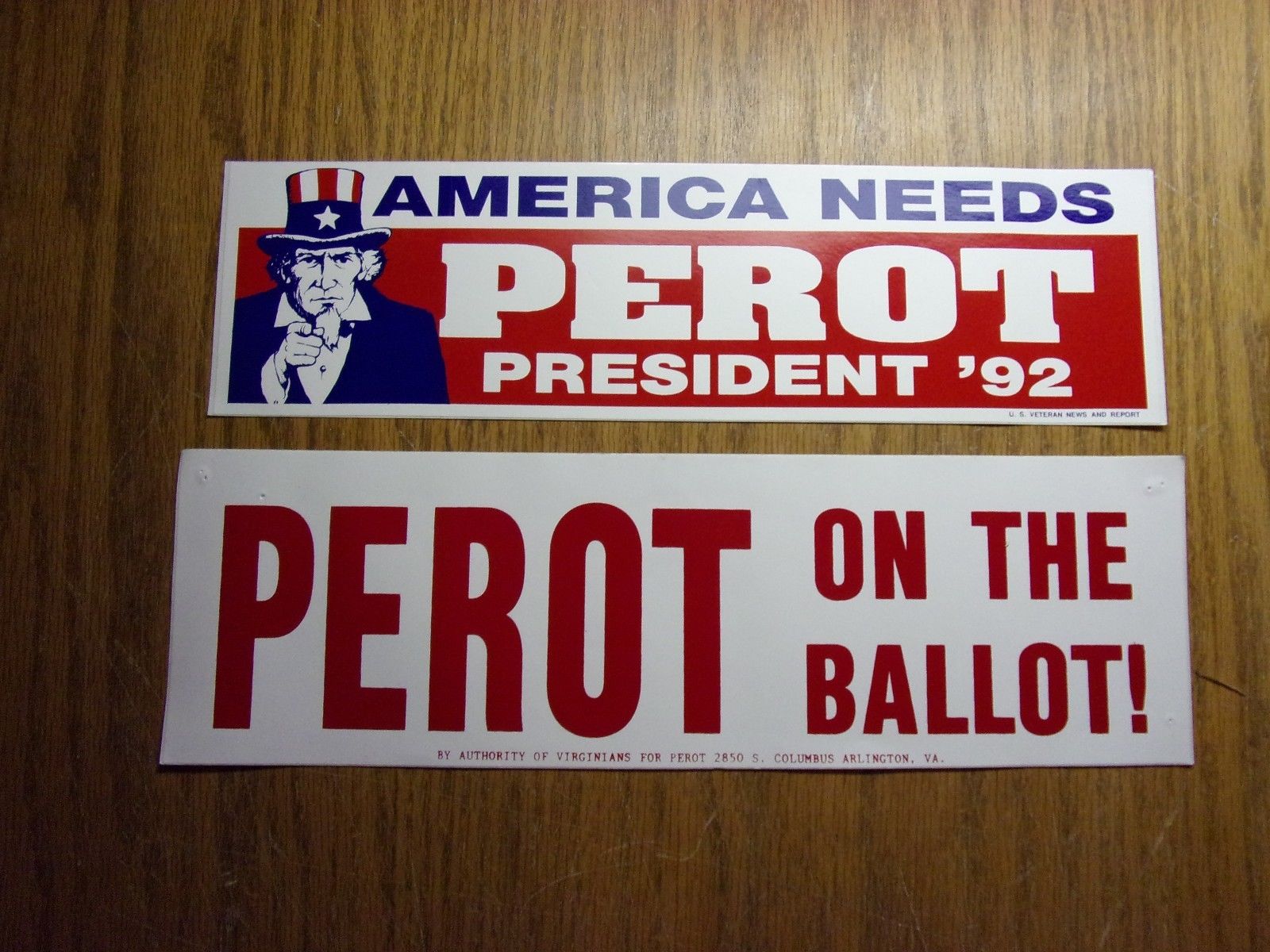 Political Bumper Sticker ROSS PEROT President Candidate 1992 NEW Lot of 2