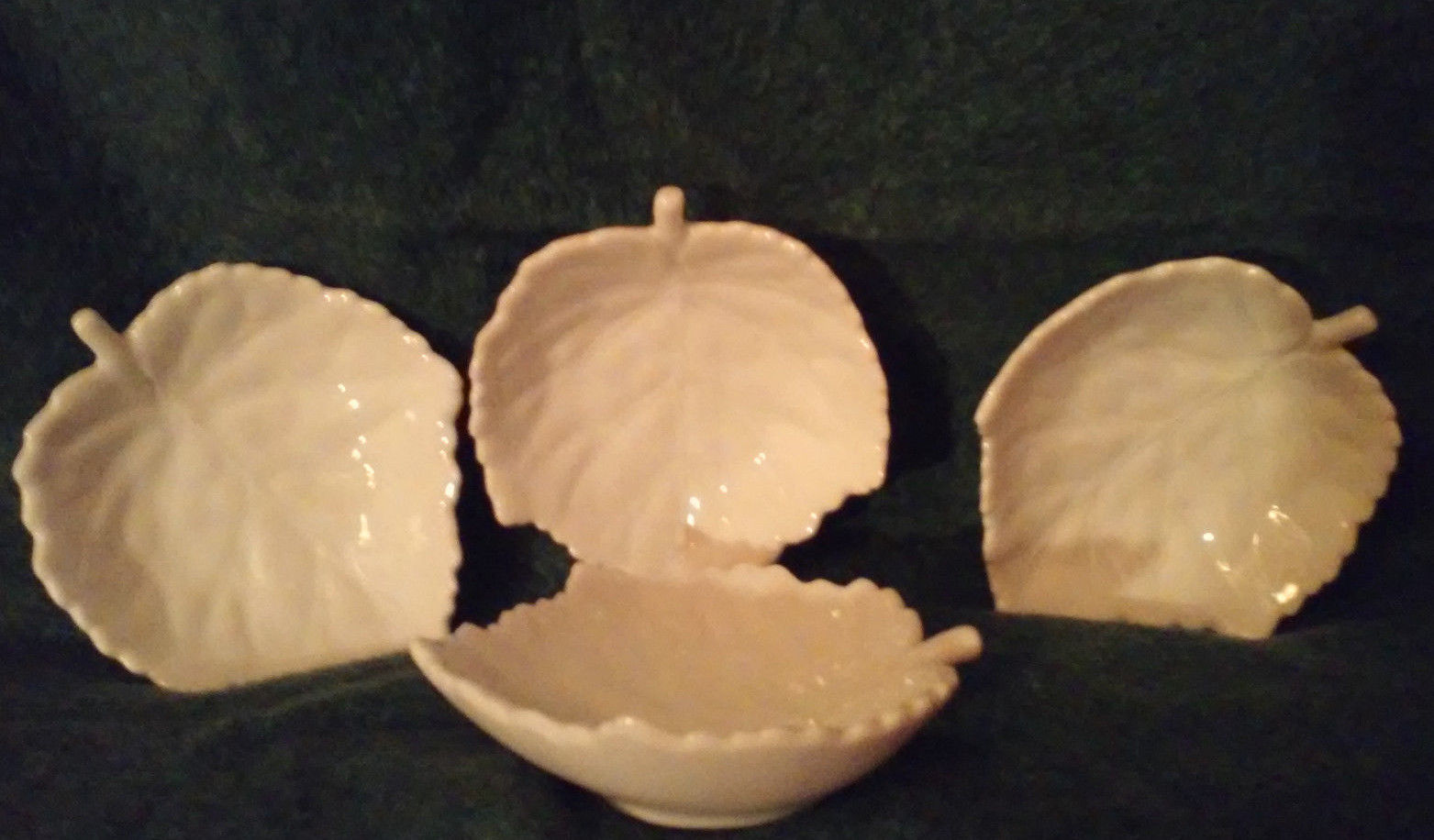 LOT OF 4 VINTAGE PORCELAIN LEAF BUTTER PATS/OPEN SALTS
