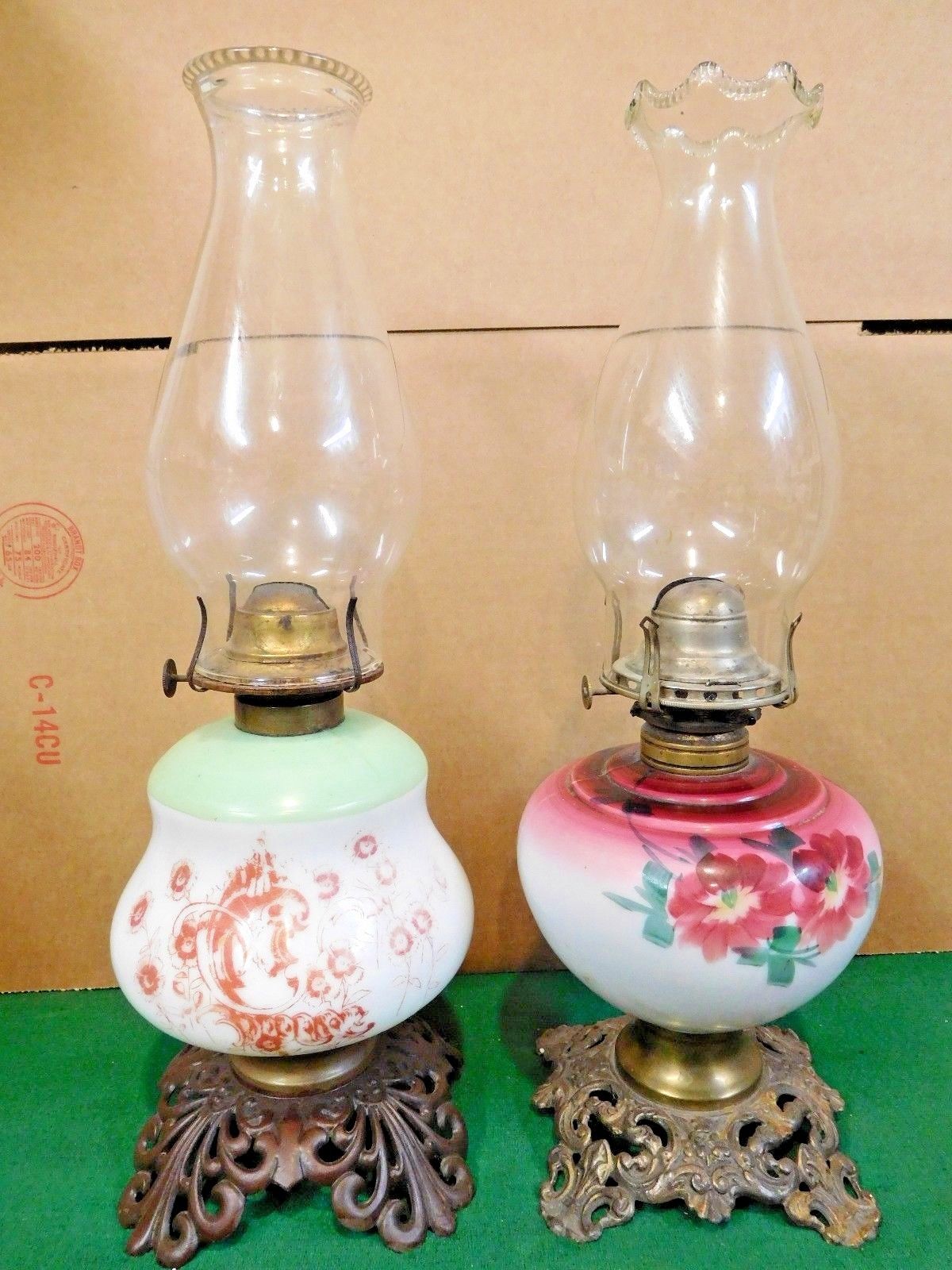 Title (ebay affiliate link): (2) 1890''s VICTORIAN PARLOR GWTW OIL LAMP BASES - w/Pie-Crust Chimneys