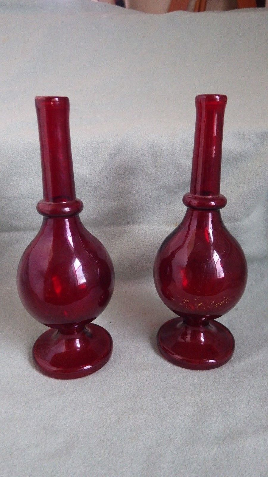 Title (ebay affiliate link): PAIR ANTIQUE BOHEMIAN PERSIAN TURKISH HARRACH HAND PAINTED GLASS VASE DECANTER