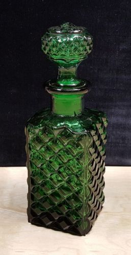 Vintage ~ Emerald Green Diamond Pattern Art Glass Decanter Bottle