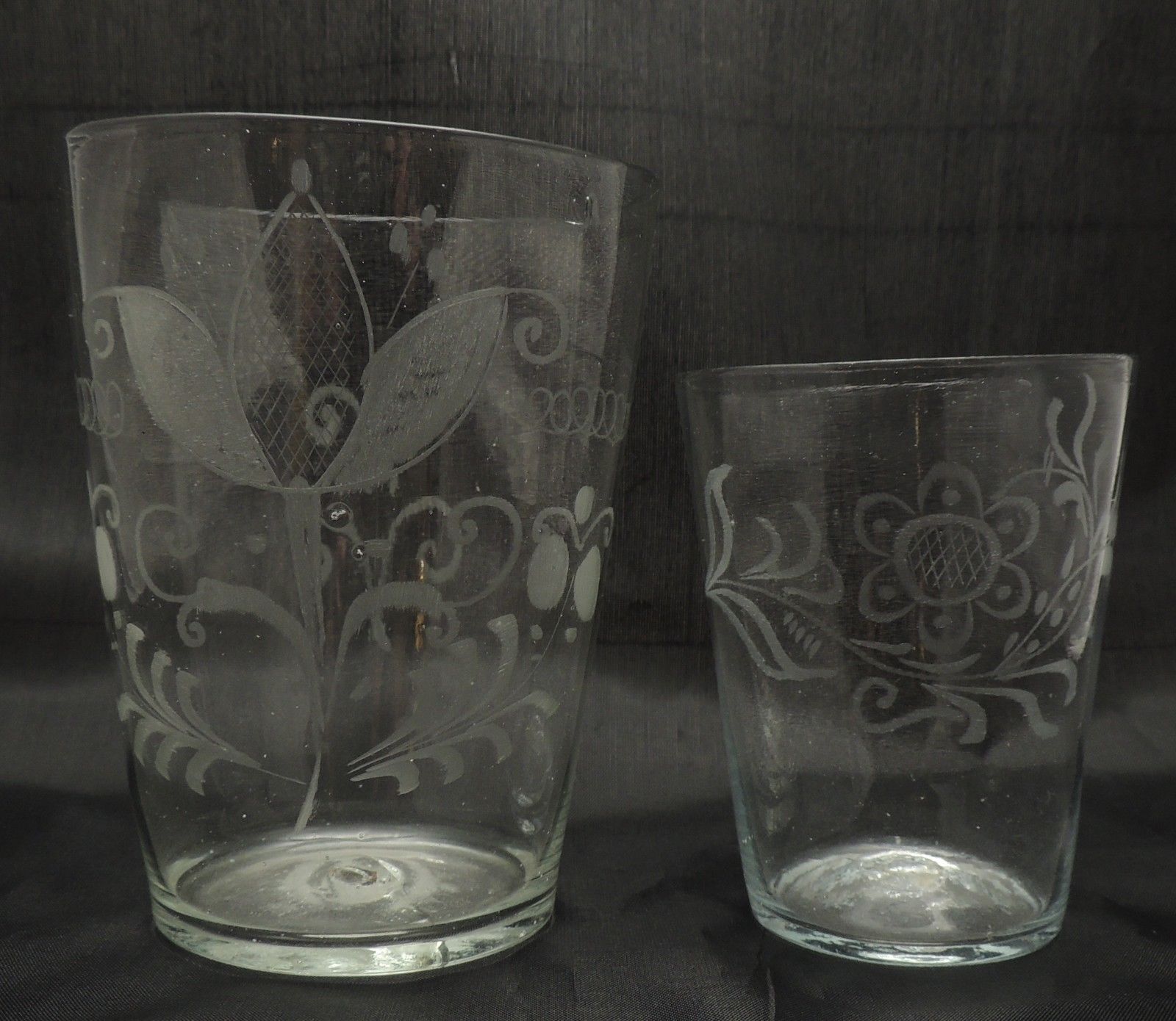 Two Antique Blown Steigel Type Flip Glasses Cups Wheel Engraved 1750-1850 RARE