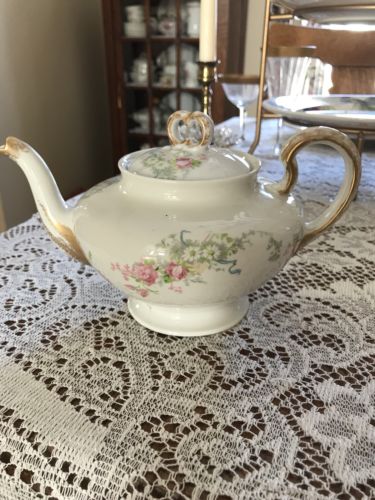 Title (ebay affiliate link): Limoges France Wm Guerin & Co. Teapot with lid-Roses, daisies, blue ribbon