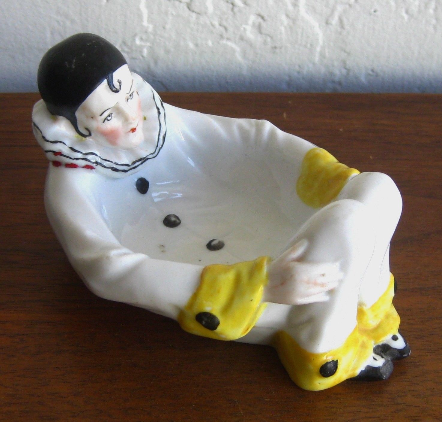 Title (ebay affiliate link): Vtg Sitzendorf German Porcelian Figural Novelty Pierrot Vanity Table Dish