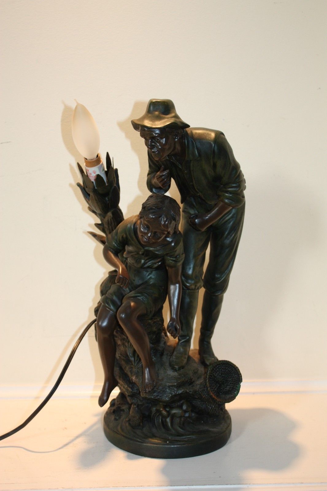 Title (ebay affiliate link): Bronze Table Lamp of Man and Boy Fishing