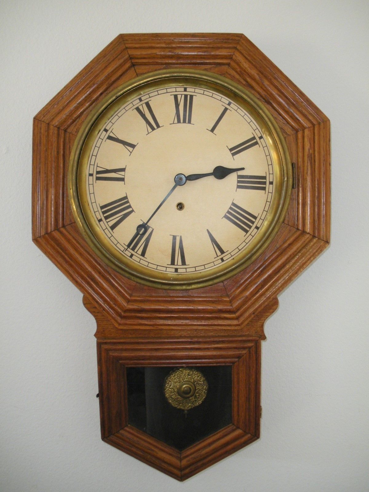 Title (ebay affiliate link): Antique Wm. L. Gilbert Clock Co. No. 3027 Schoolhouse Regulator Wall Clock, Runs