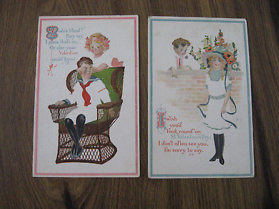 Title (ebay affiliate link): 2 Fade Away Art~Girl blinds Boy Sitting~Girl Flowers~Boy~Valentine~postcard