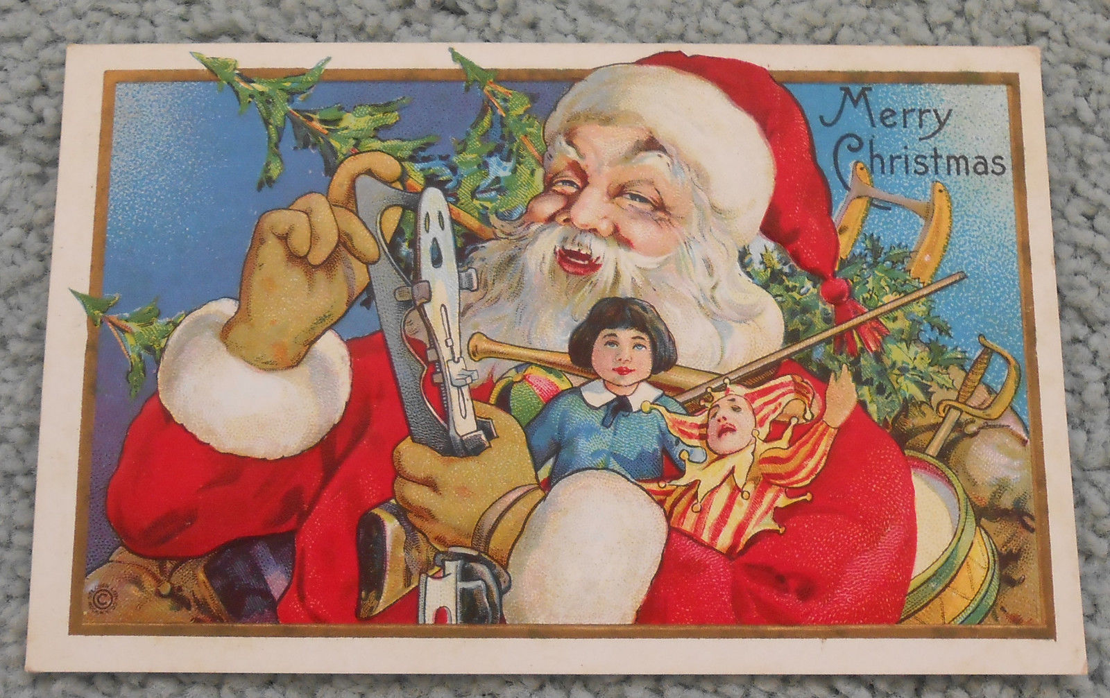 Title (ebay affiliate link): Christmas Embossed Santa Postcard With Ice Skate Doll Joker Series #540