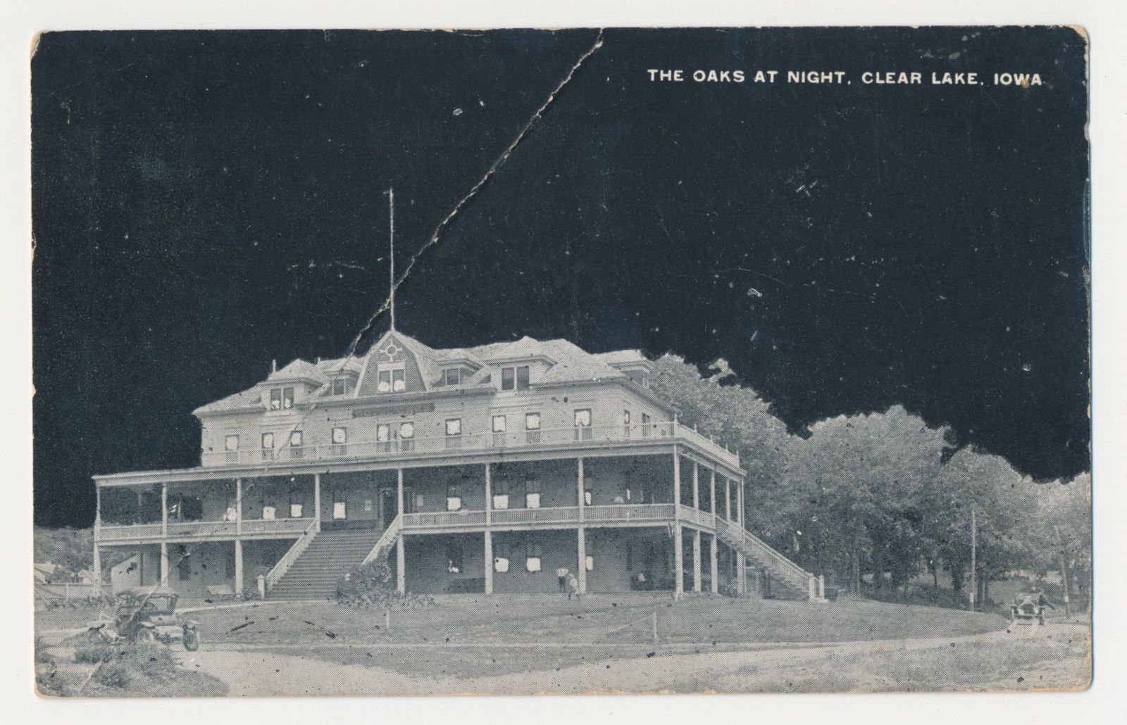 Title (ebay affiliate link): Postcard - The Oaks (Hotel) at Night - Clear Lake, Iowa