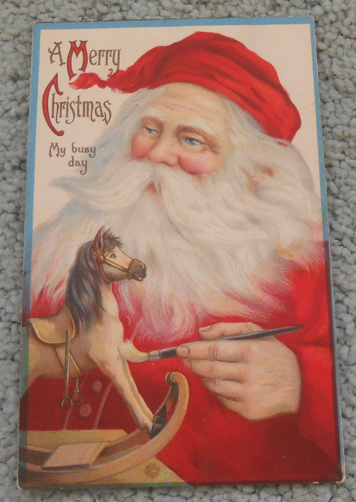 Title (ebay affiliate link): Christmas Santa Postcard With Santa Painting Rocking Horse Series #737