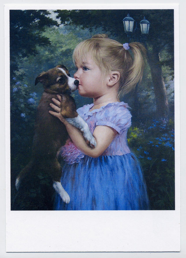 Title (ebay affiliate link): ART Kids Child Children Little Girl and Nice Puppy Garden New Modern Postcard #4