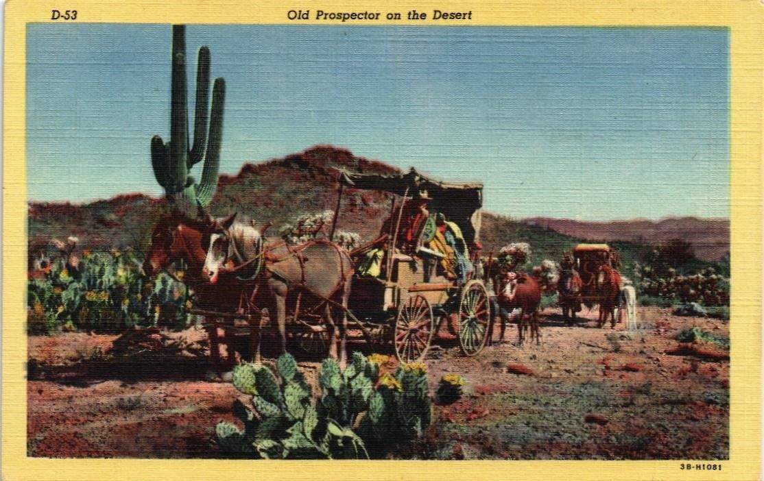 Title (ebay affiliate link): DR JIM STAMPS US PROSPECTOR DESERT WAGON TRAIN LINEN COLORTONE POSTCARD