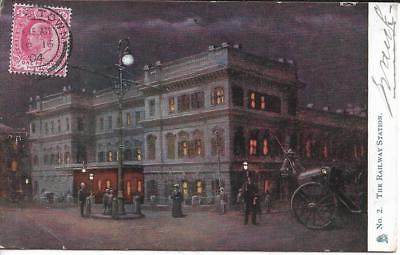 Postcard SOUTH AFRICA CAPETOWN THE RAILWAY STATION CONSOLATO D''ITALIA ITALY 1904