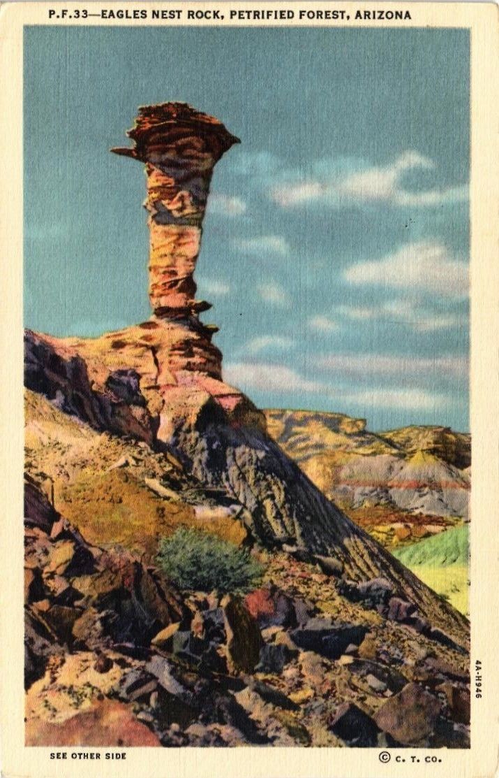 DR JIM STAMPS US EAGLES NEST ROCK PETRIFIED FOREST ARIZONA LINEN POSTCARD