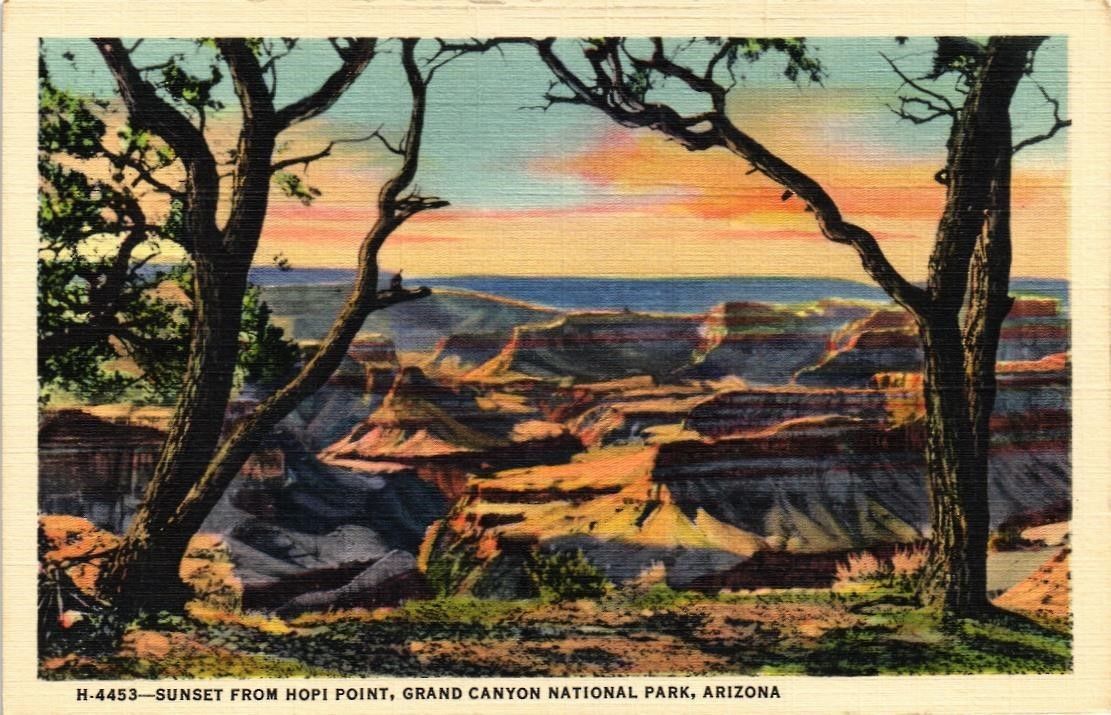 Title (ebay affiliate link): DR JIM STAMPS US SUNSET HOPI POINT GRAND CANYON NATIONAL PARK LINEN POSTCARD