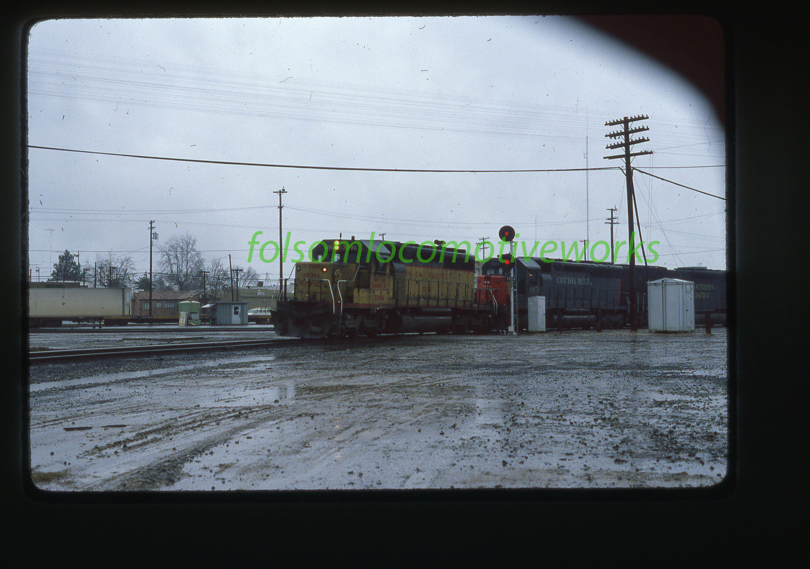 Union Pacific UP 3296 leads freight in Roseville Dec 1979 ektachrome slide