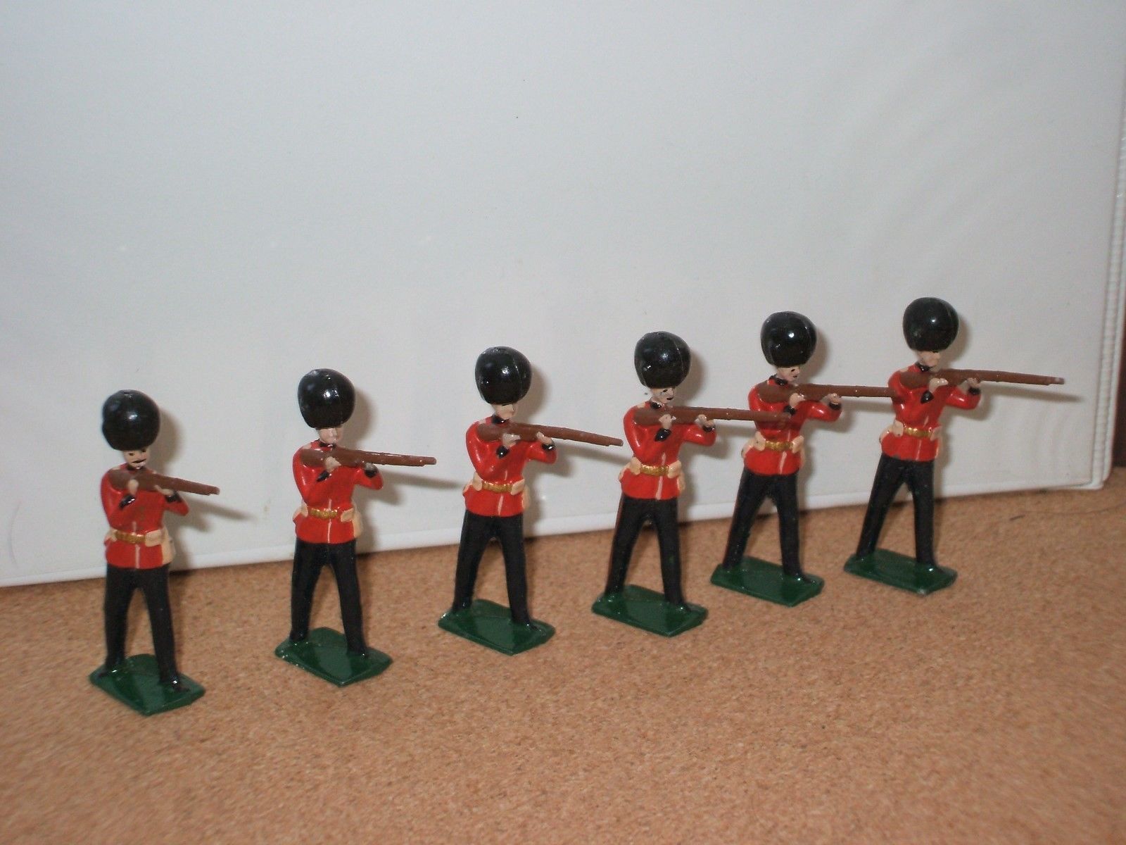 Lot of 6 vintage Britains lead soldiers - 6 Welch Guards standing firing