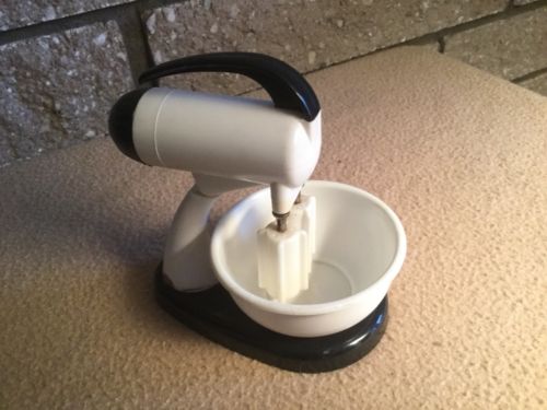 Title (ebay affiliate link): Vintage Child Size Toy Pretend Plastic Black & White Stand Mixer & Bowl Used
