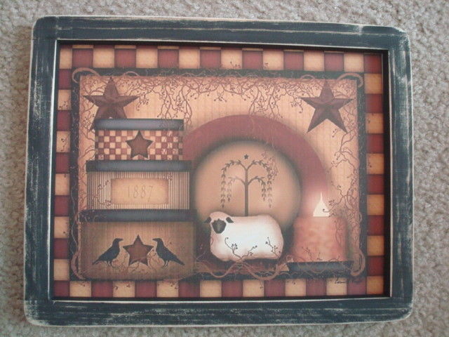 Title (ebay affiliate link): Primitive Country Mini Print *3-Stacked Boxes* in black frame 8" x 6"