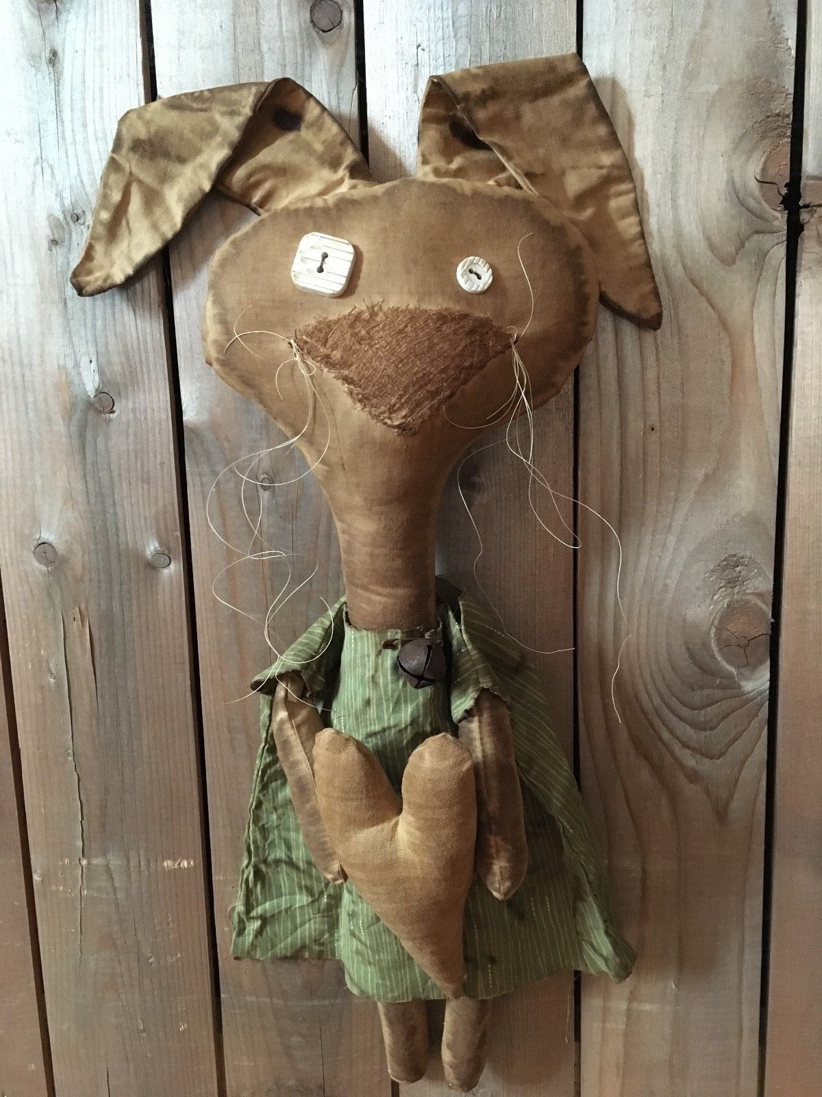 Title (ebay affiliate link): Primitive Bunny Rabbit Doll w Homespun Heart Easter Bunny Doll Rusty Bell