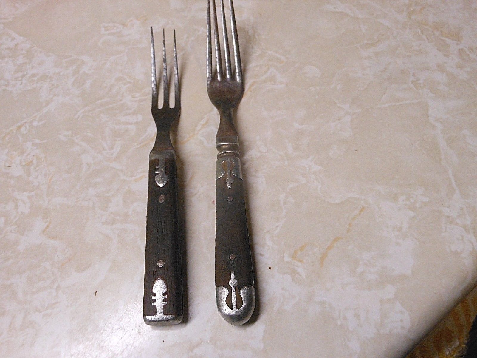 Title (ebay affiliate link): Antique Civil War Era 2 wood Handle Forks with Pewter Inlay