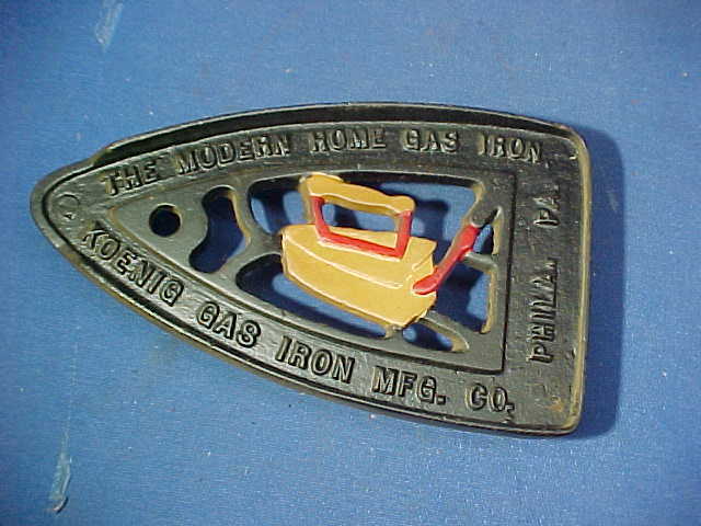 Title (ebay affiliate link): Orig Early 20thc MODERN HOME Cast Iron GAS IRON Advertising TRIVET Koenig Co
