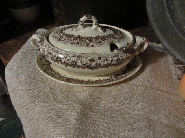Title (ebay affiliate link): OLD EARLY ANTIQUE PRIMITIVE BROWN TRANSFERWARE TUREEN WITH UNDERPLATE AND LID...