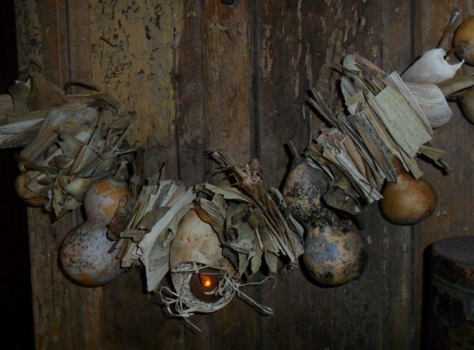 Title (ebay affiliate link): Primitive Gourd Garland w/ Candle Light, Corn Husk Pcs. Early Look Farmstead