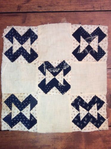 Title (ebay affiliate link): Single LARGE VINTAGE QUILT Block Pillow / Doll QUILT / " Deep Indigo Blue"