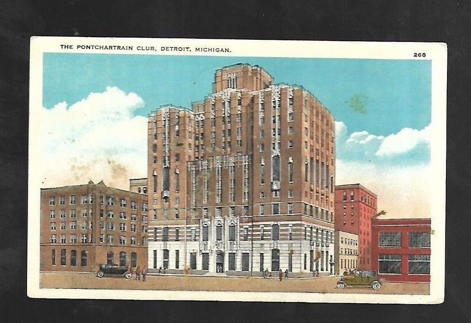 Title (ebay affiliate link): Vintage Postcard Pontchartrain Club Detroit Michigan Old Cars