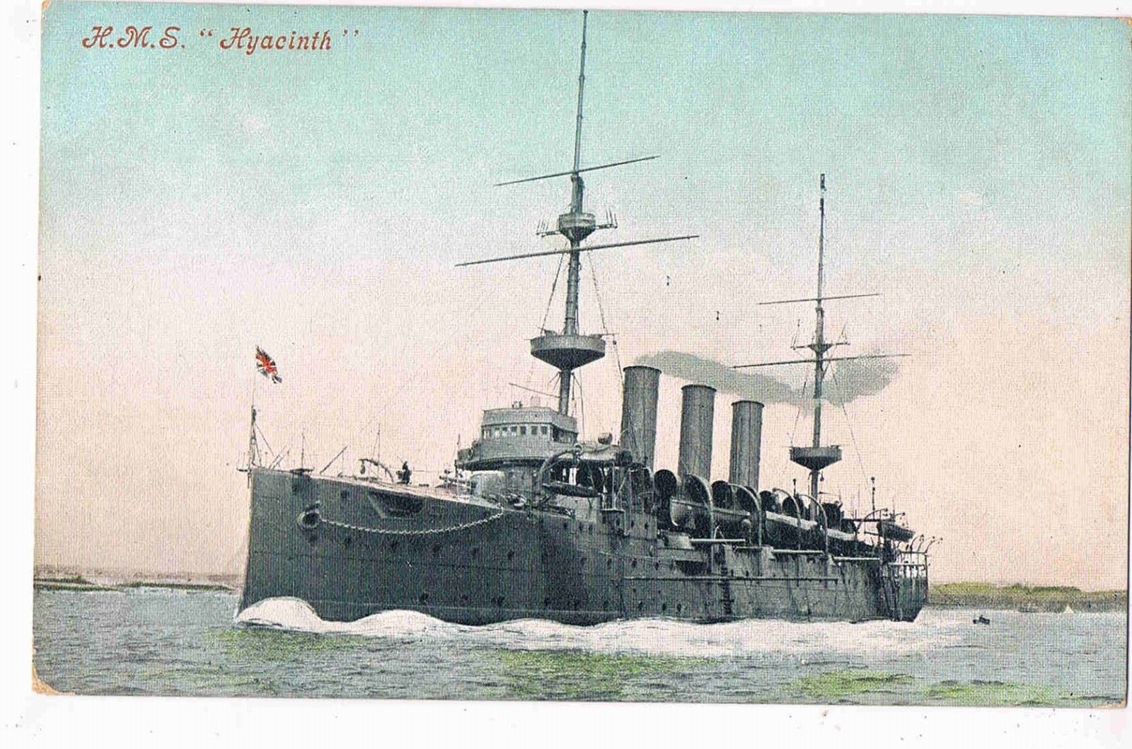 Title (ebay affiliate link): THE ROYAL NAVY - CPC - HIGHFLYER CLASS PROTECTED CRUISER H.M.S. "HYACINTH" 1900s