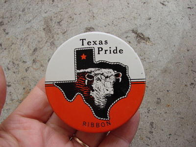 Texas Pride Typewriter Ribbon Tin w Hereford Cow Pic
