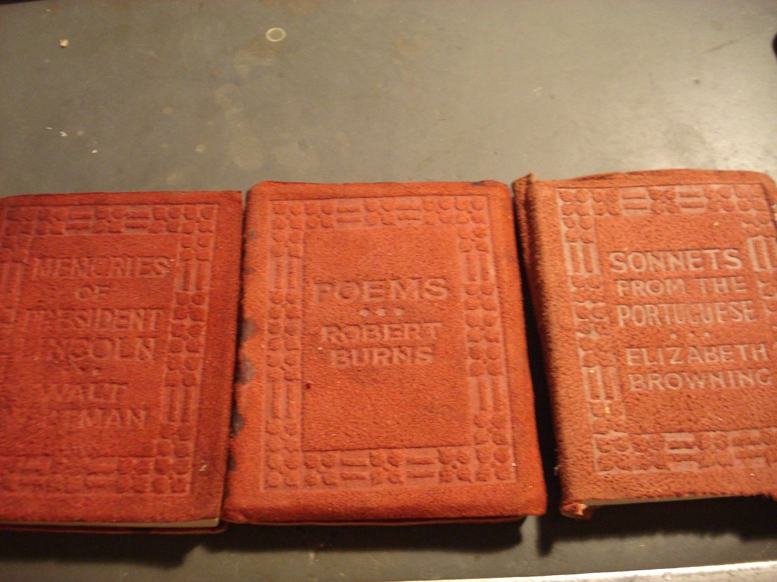 Title (ebay affiliate link): 3 LITTLE LEATHER LIBRARY BOOKS RED. BURNS, WALT WHITMAN, ELIZABETH BROWNING