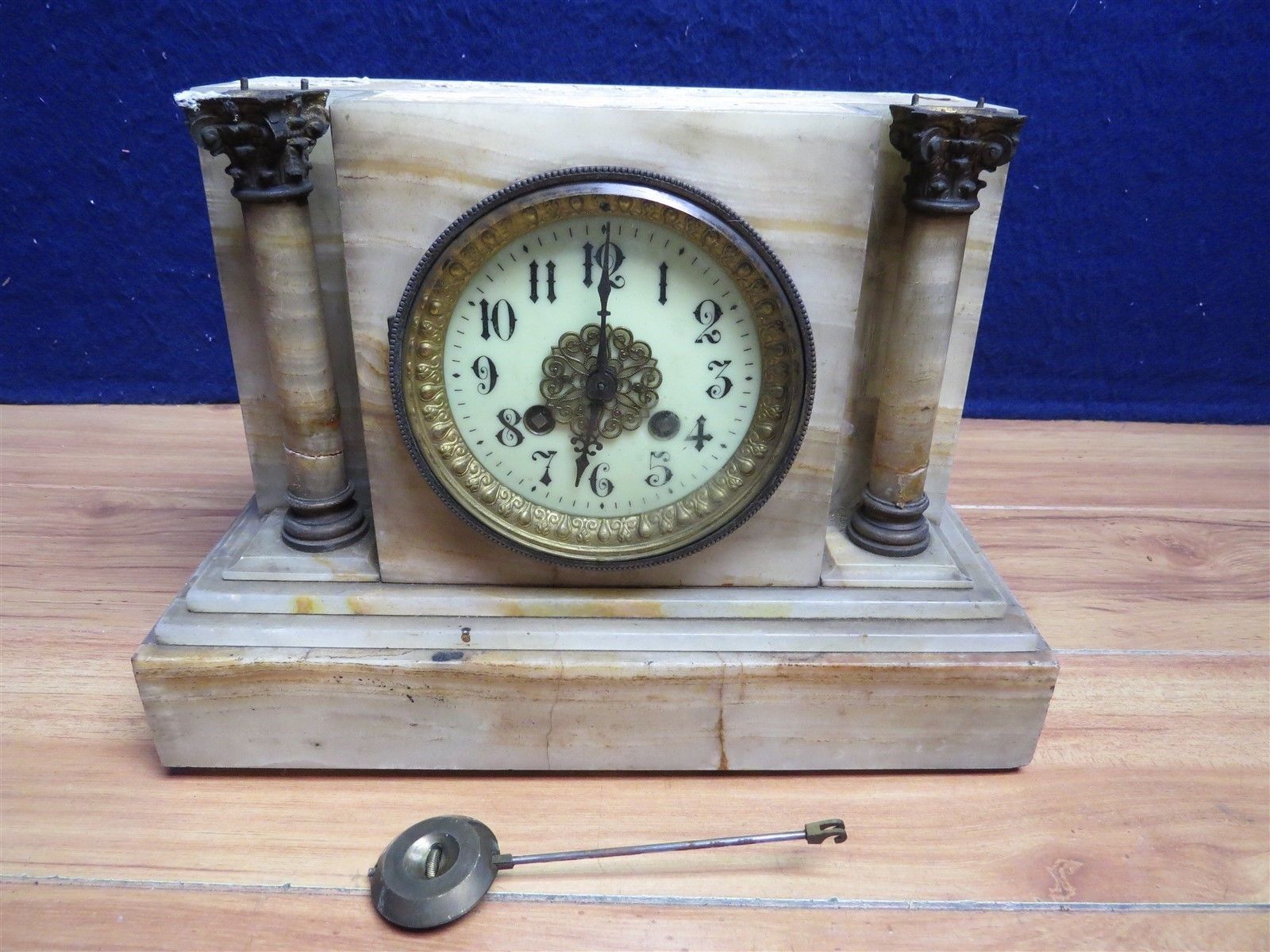 Title (ebay affiliate link): L MARTI ANTIQUE ONYX MANTEL CLOCK PARTS OR RESTORE LV975