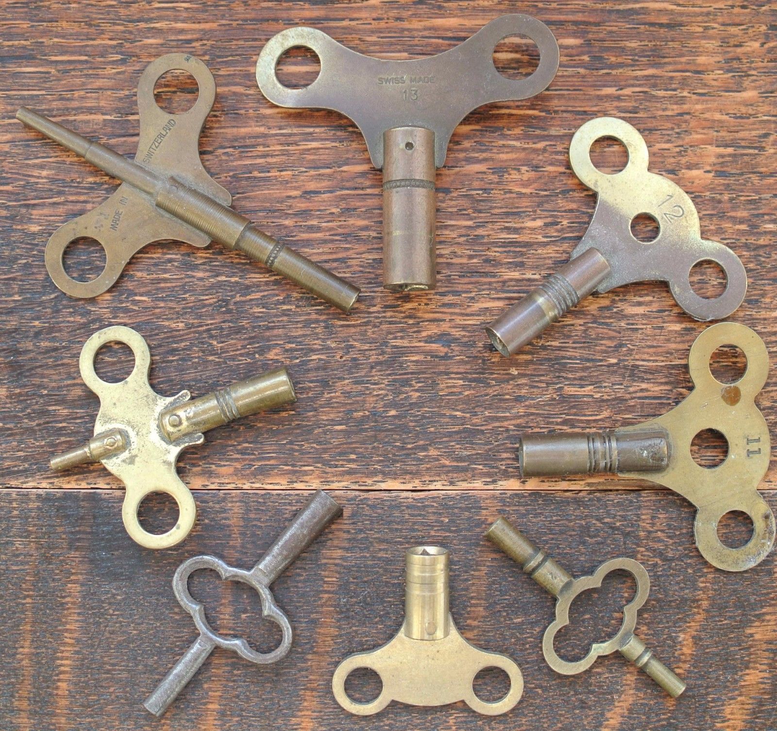 Rare Job Lot of 8 Antique Clock/Pocket Watch Keys