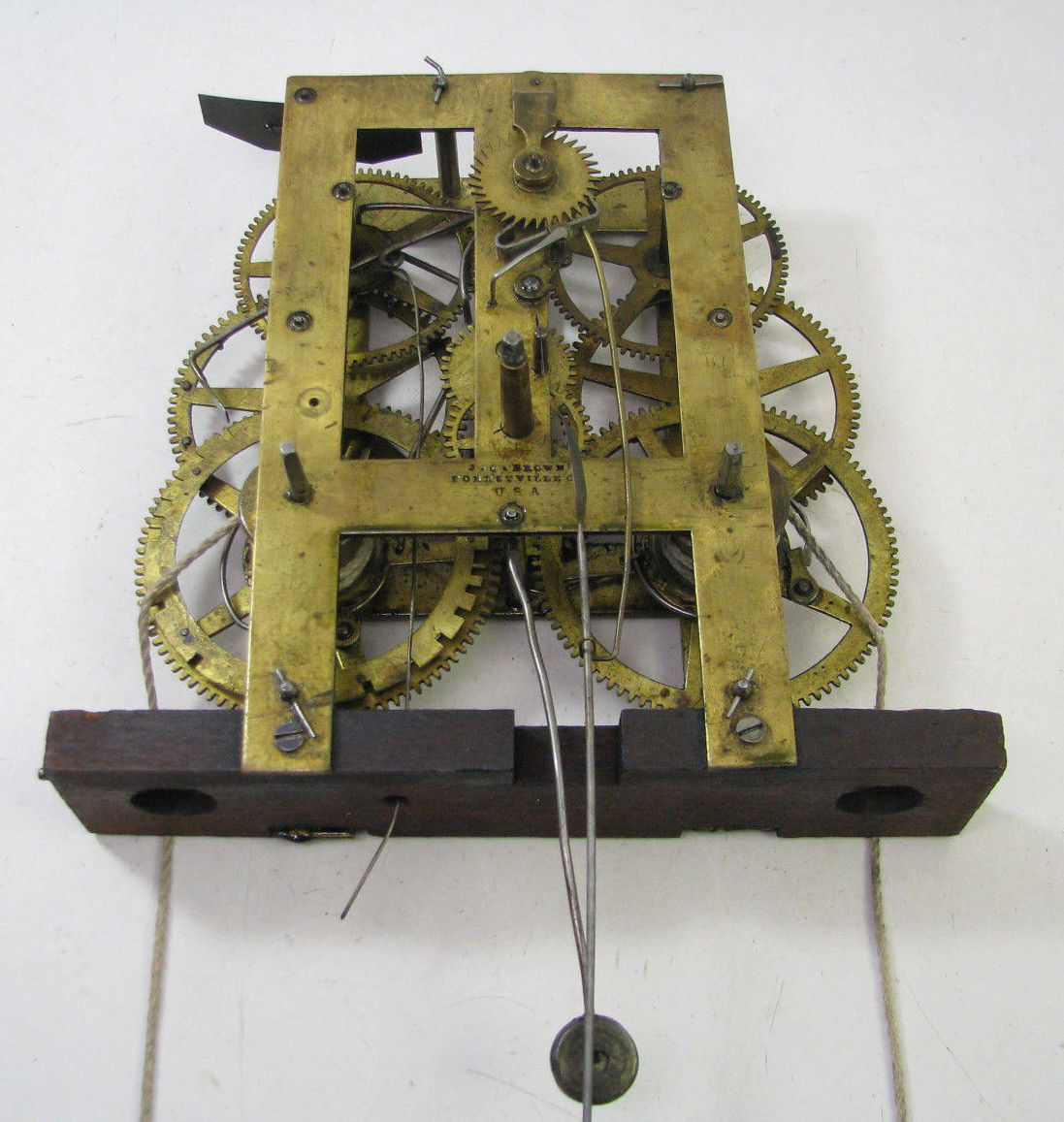 Title (ebay affiliate link): ANTIQUE JC BROWN FORESTVILLE OG WEIGHT DRIVEN CLOCK MOVEMENT PARTS REPAIR