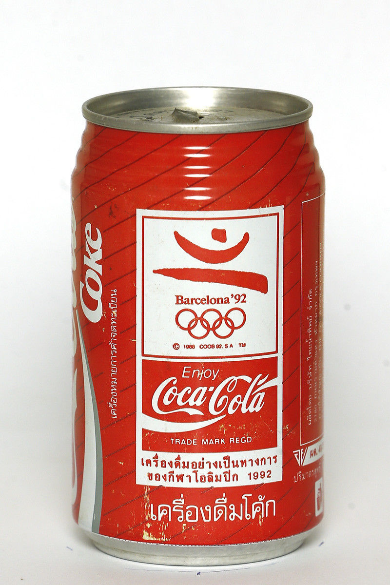 Title (ebay affiliate link): 1992 Coca Cola can from Thailand, Barcelona ''92