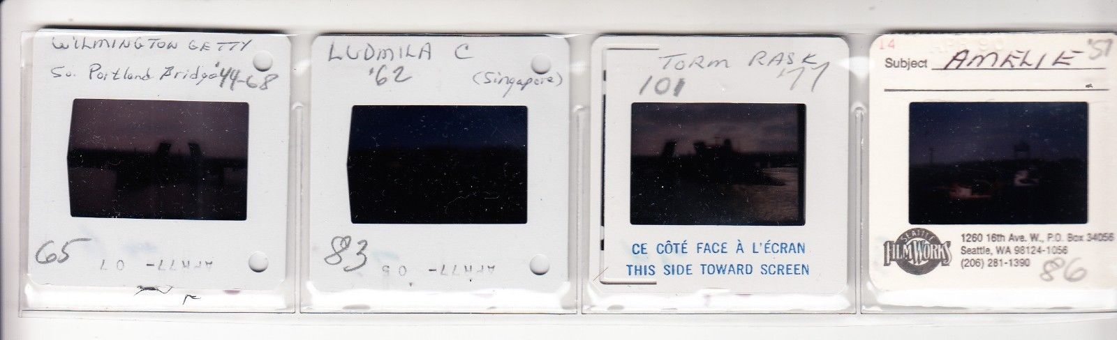 SHIP PHOTO SLIDES. SHIPS AT YARMOUTH, N.S.; PORTLAND, MAINE 1977 - 1990.