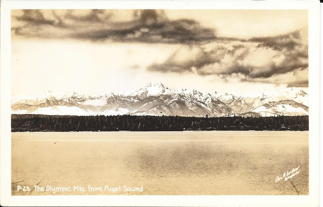 Title (ebay affiliate link): VINTAGE 1930-1950 REAL PHOTO POSTCARD - THE OLYMPIC MT''S FROM PUGET SOUND, WA