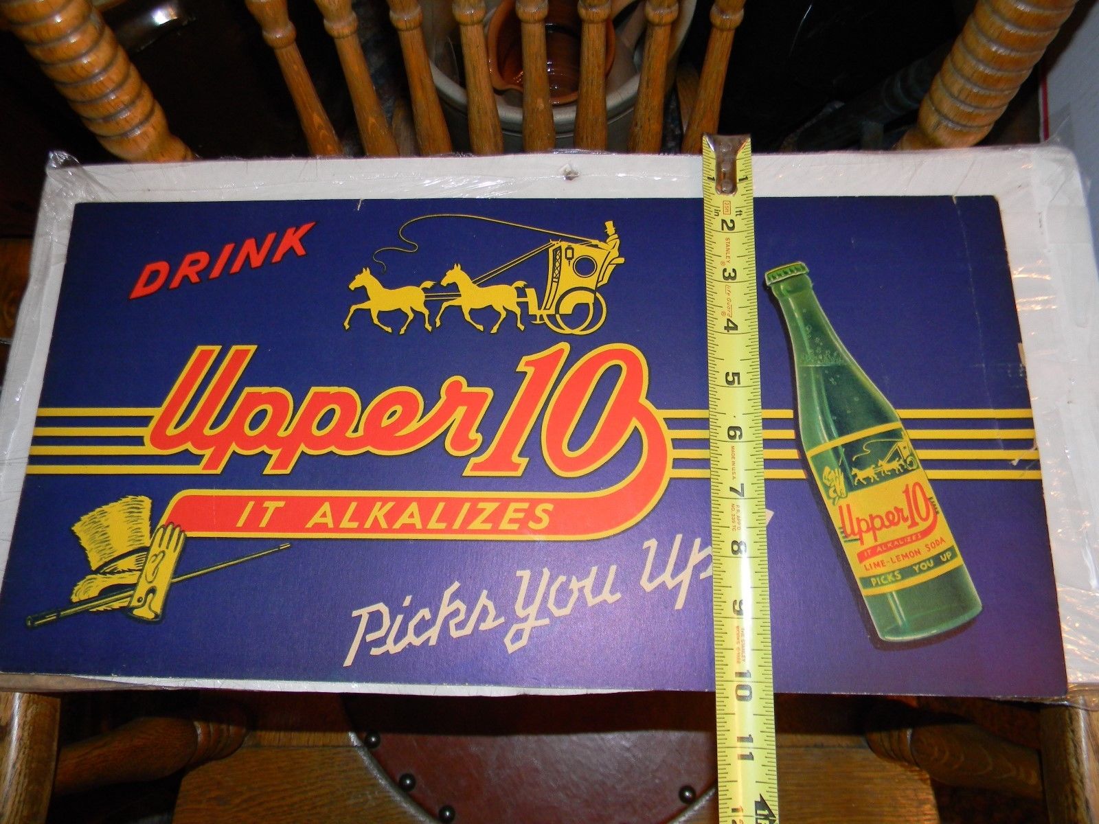 Title (ebay affiliate link): Vintage Drink Upper 10 Lemon Lime Soda Cardboard Sign circa 1940''s NICE COLORS !