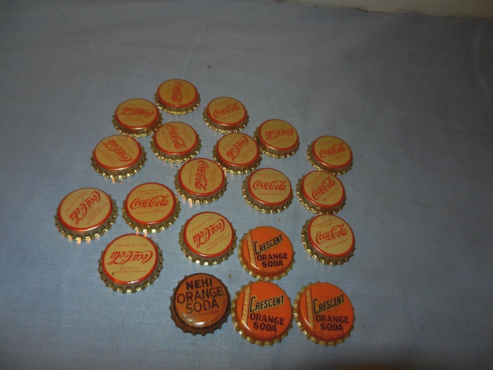 Title (ebay affiliate link): Vintage Group Unused Coca Cola, Crescent Orange Soda Bottle Caps Cork Lined