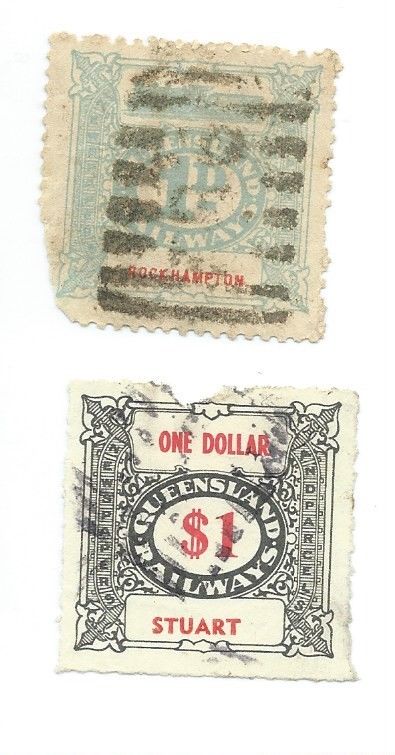 Two Qld Parcel Stamps: Rockhampton 1d, Stuart $1