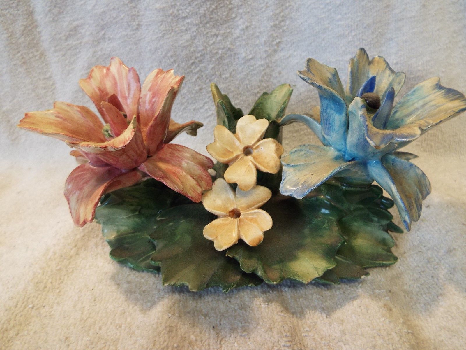 Title (ebay affiliate link): CAPODIMONTE FLORAL CANDLE HOLDER MADE IN ITALY 6" X 3 1/2" X 4"