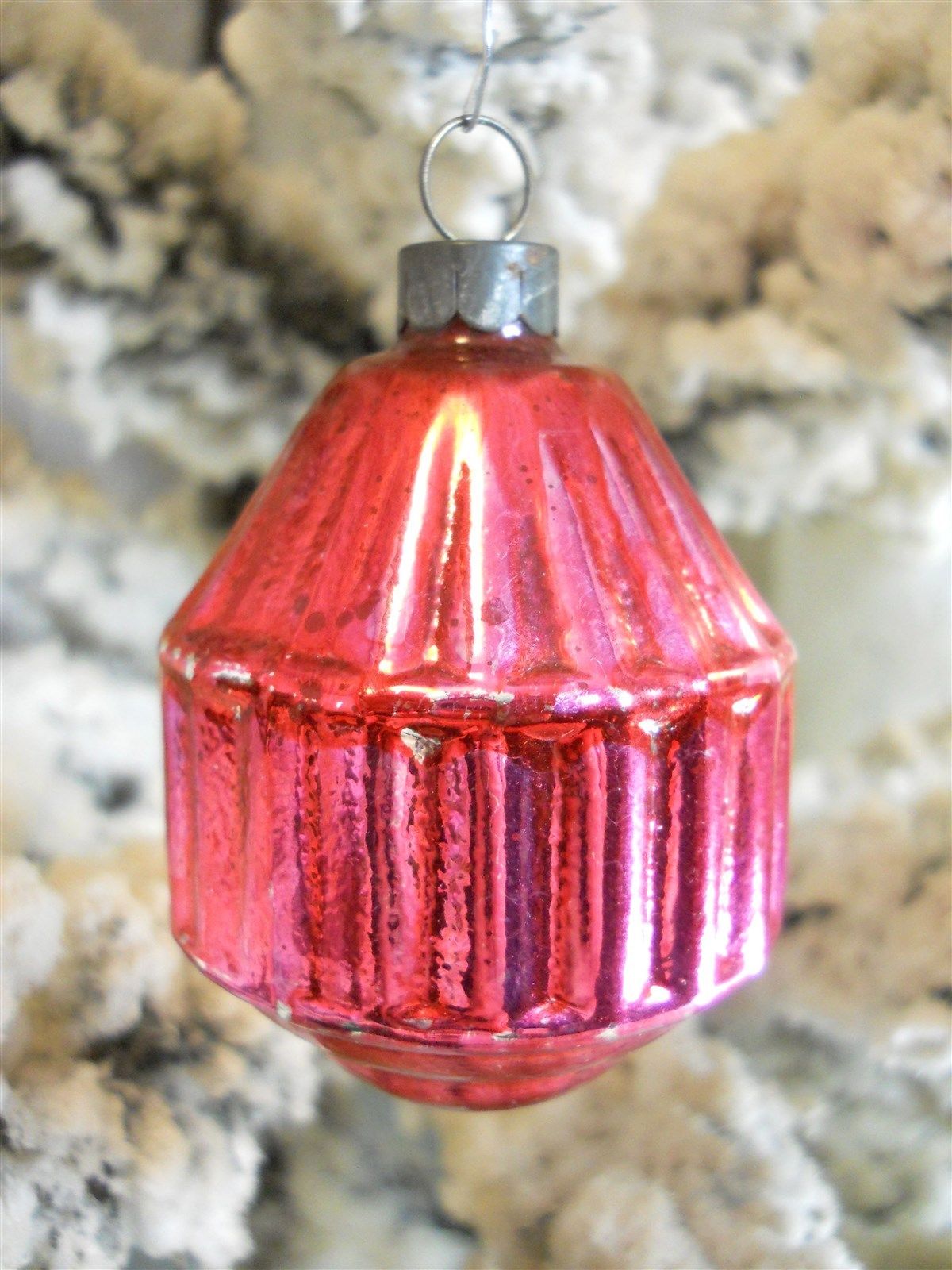 Title (ebay affiliate link): Vtg 1930s CORNING Machine Age Art Deco CERISE Pink LANTERN Pre-WW2 Xmas Ornament