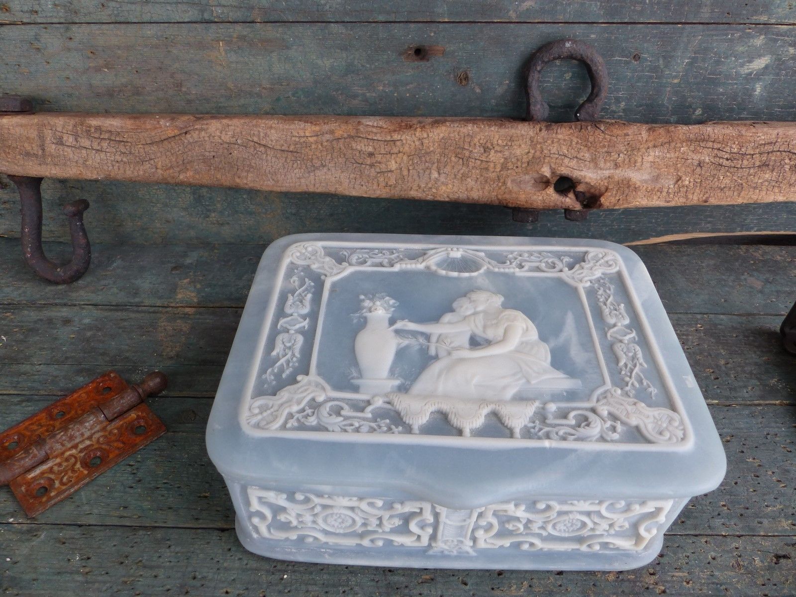 vintage dresser trinket jewelery box ornate incolay stone greek lady & child