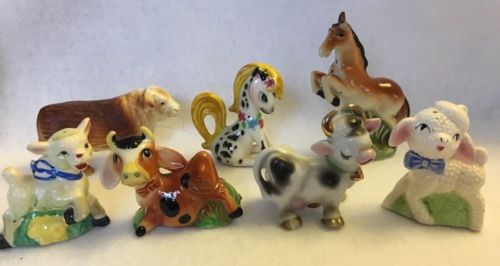 Vintage Lot Of 7 Bull, Cow, Horse, Sheep, Lamb Salt And Pepper Shakers, Singles