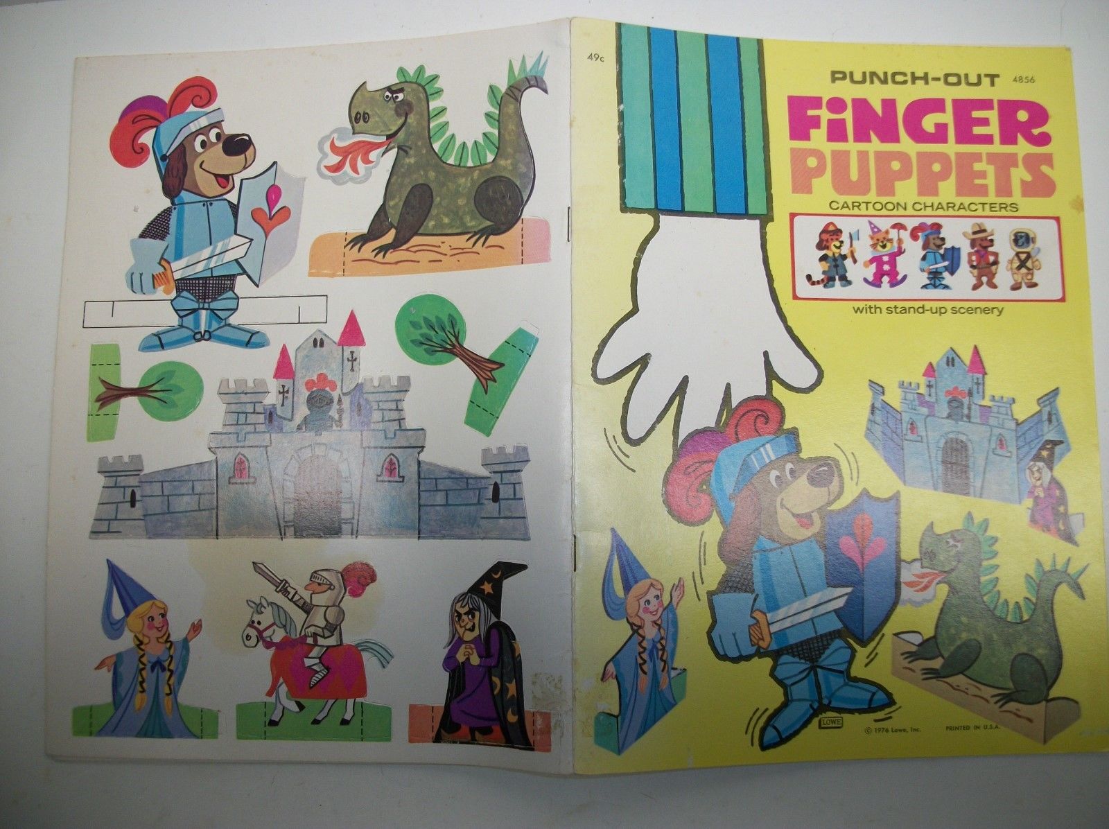 Title (ebay affiliate link): Vintage 1976 Lowe Punch Out Finger Puppets Cartoon Charactors Book