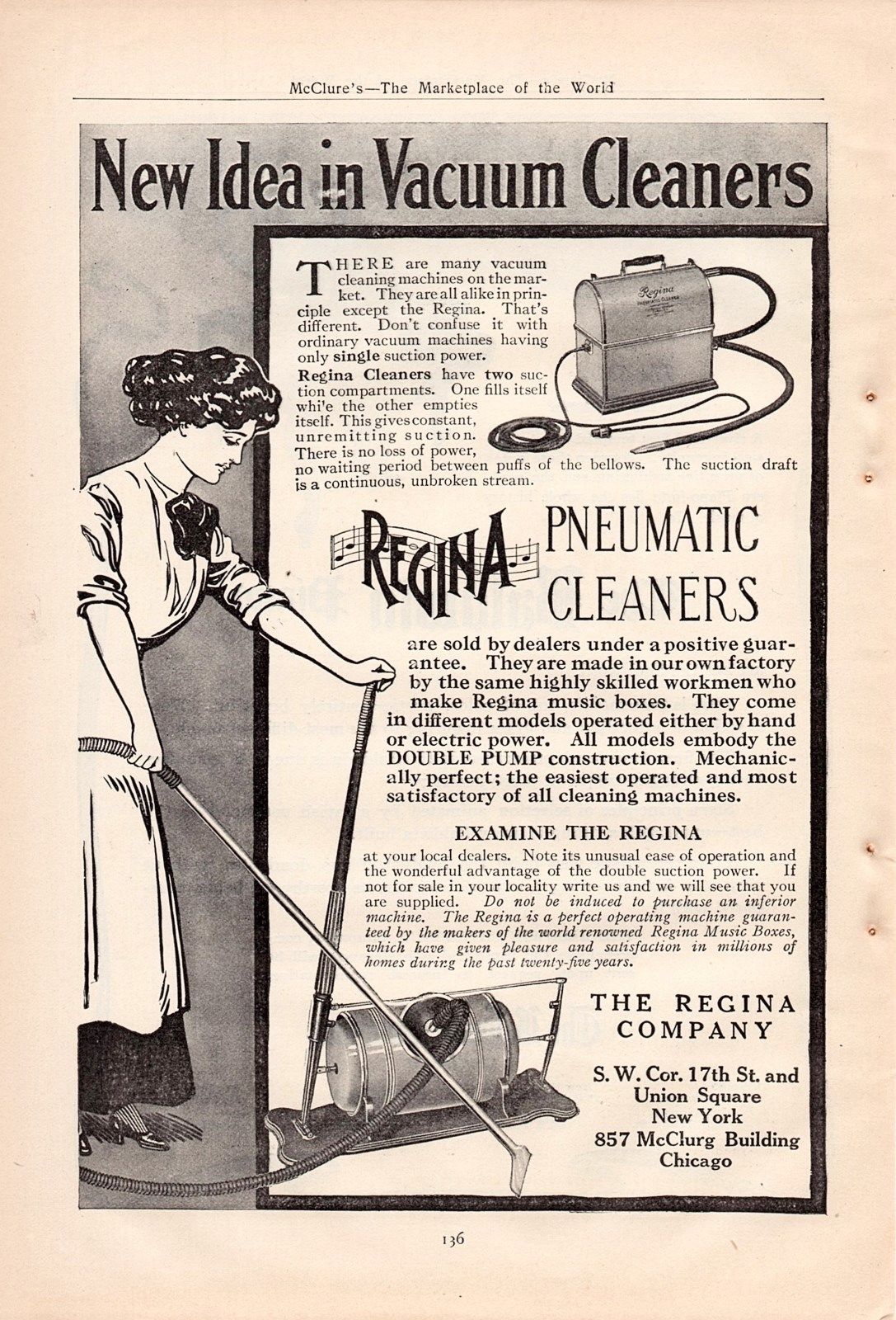 1910 REGINA PNEUMATIC VACUUM CLEANER AD