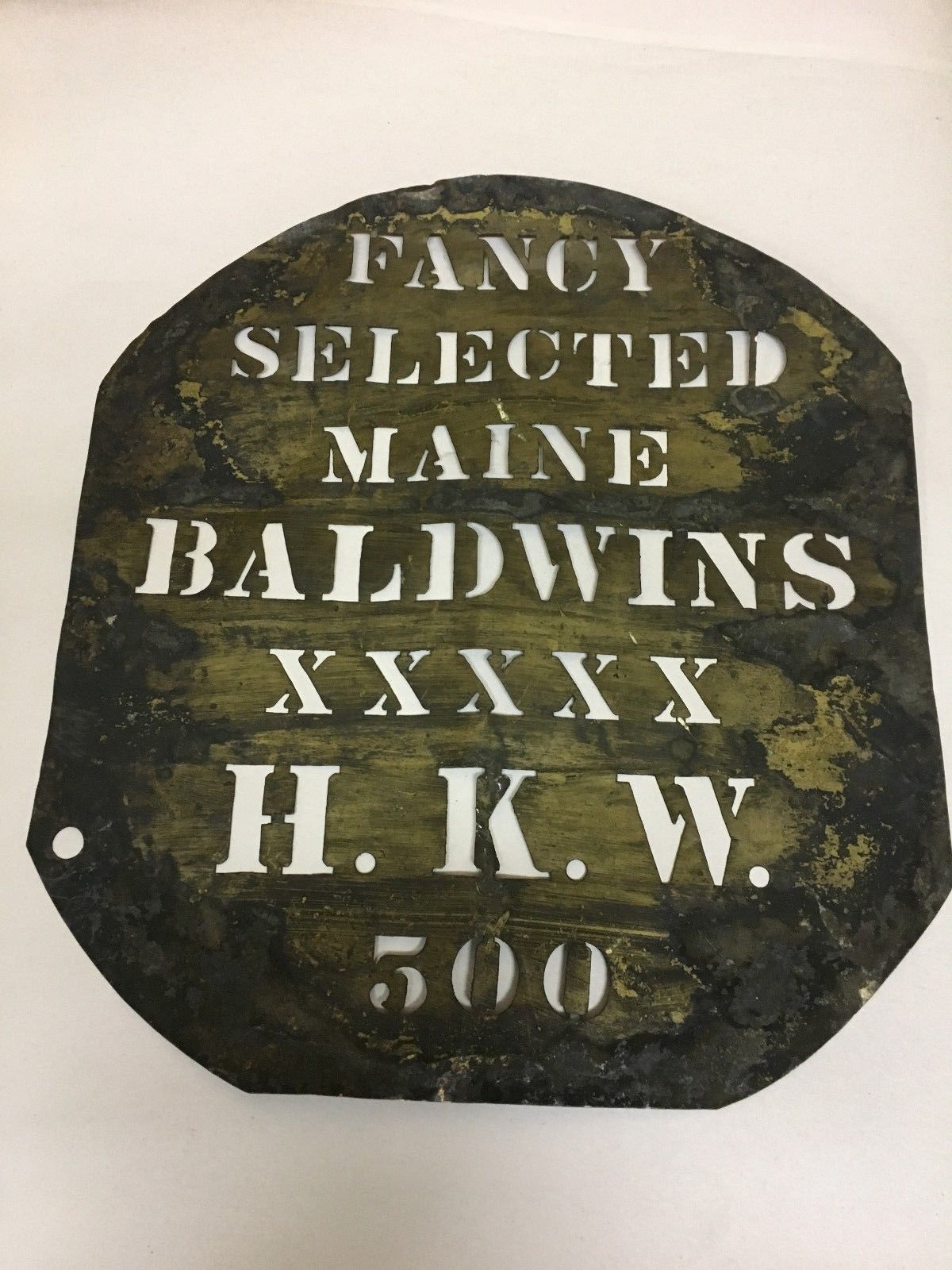 Antique Brass Crate /Barrel Stencil MAINE BALDWINS XXXXX