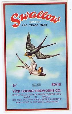 Swallows Firecracker Brick Label Yick Loong Fireworks Macau ICC Class C 1 1/2